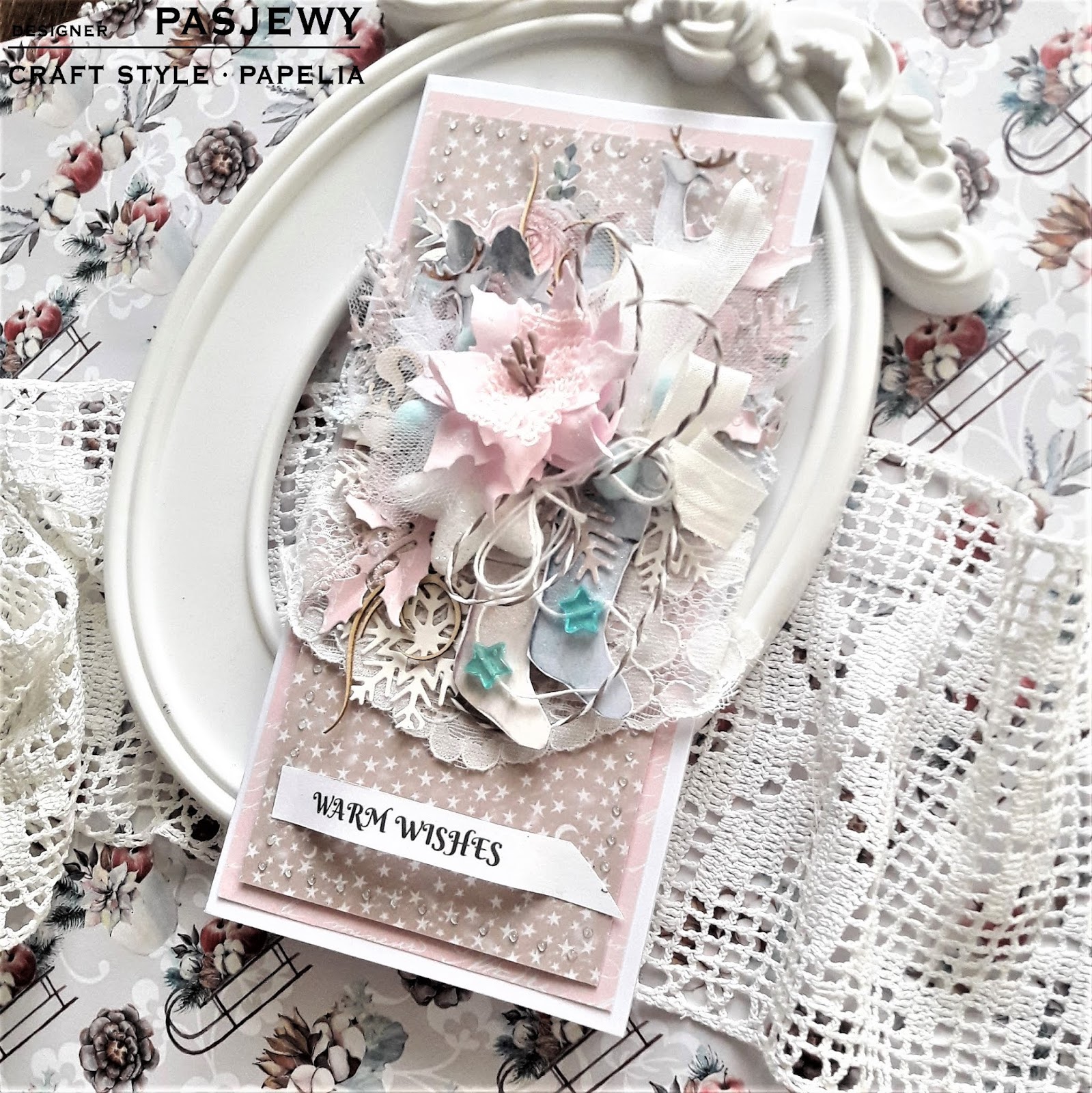 do jej wykonania posłużyły mi pastelowe, świąteczne papiery @ScrapBoys oraz malutkie tekturki @Papelia